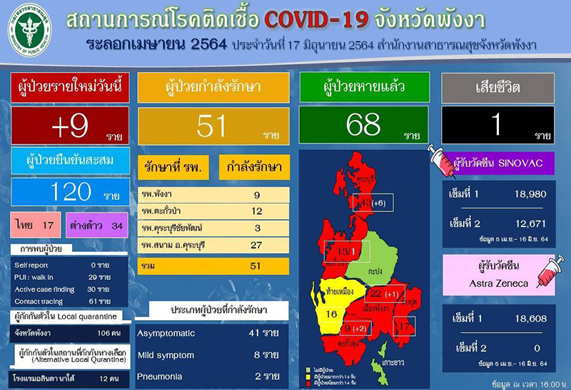 พังงาพบผู้ป่วยโควิดเพิ่ม 9 ราย