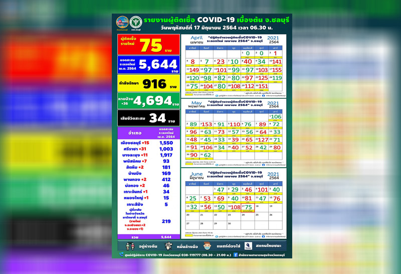 ชลบุรีพบโควิดเพิ่ม75ค้นหาเชิงรุกกว่า600คน