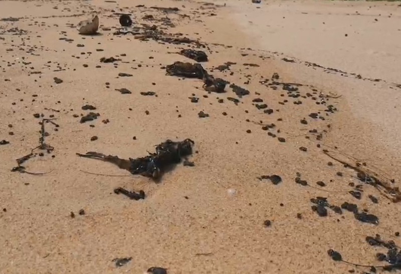 พังงา พบคราบน้ำมันโผล่หาดท้ายเหมือง คาด ลอยมาจากเหตุไฟไหม้เรือบรรทุกสินค้า