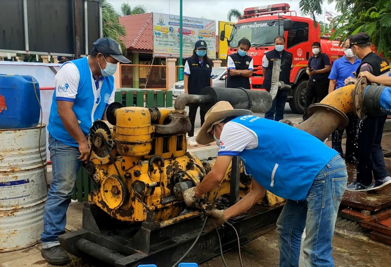 นครพนมตั้งเครื่องสูบน้ำรับมือฝนตกต่อเนื่อง