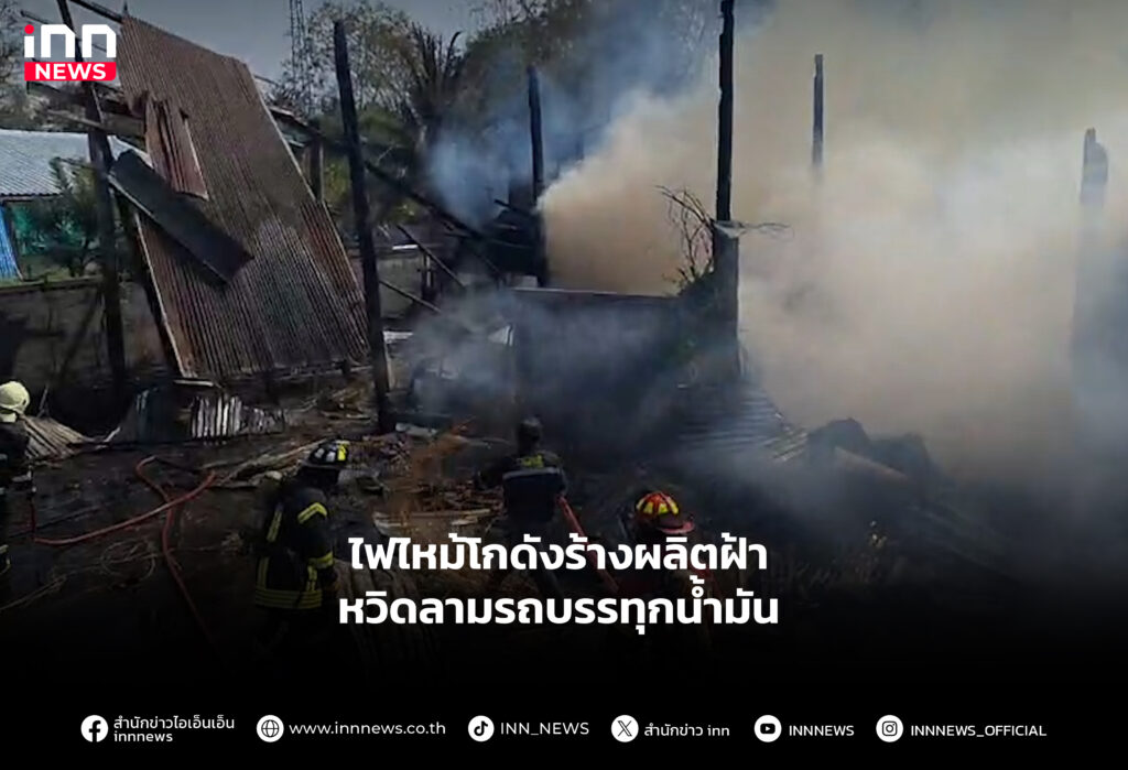 ไฟไหม้โกดังร้างผลิตฝ้าเพดาน หวิดลุกลามเข้าจุดจอดรถบรรทุกน้ำมัน เจ้าหน้าที่รุดสกัดควบคุมได้ทัน