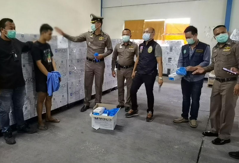 ชลบุรีทลายโกดังผลิตถุงมือค่าเกือบ100ล้าน