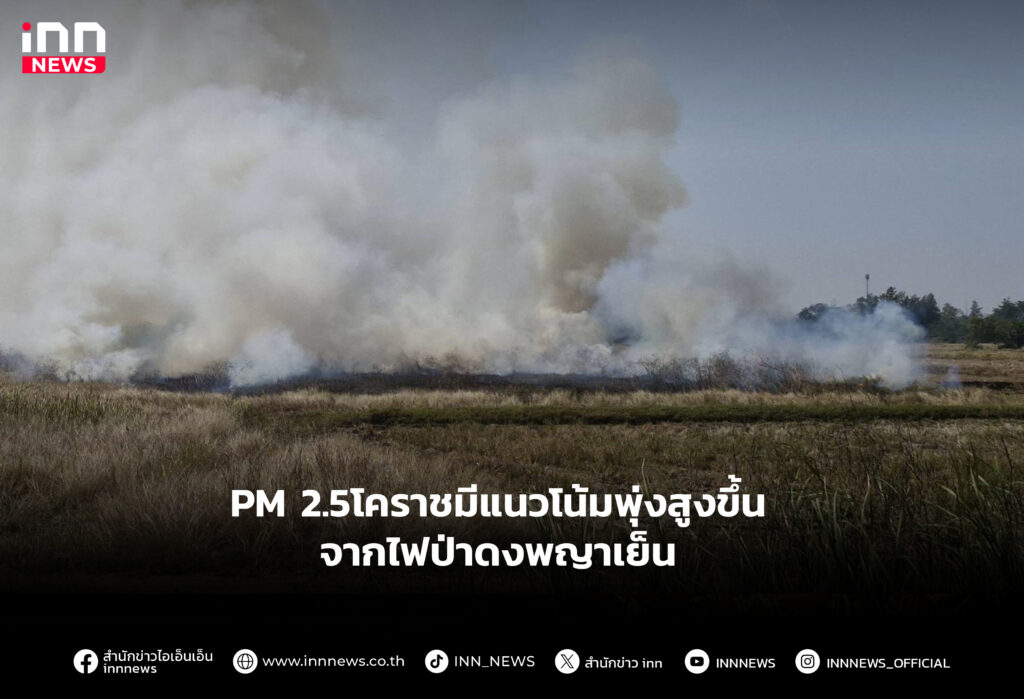 PM 2.5 ในพื้นที่โคราชมีแนวโน้มพุ่งสูงขึ้นต่อเนื่อง หลังเกิดไฟป่าดงพญาเย็น และมีการลักลอบเผาพื้นที่การเกษตรขึ้นจำนวนมาก เตือนประชาชนในพื้นที่สวมหน้ากากป้องกันในระยะนี้