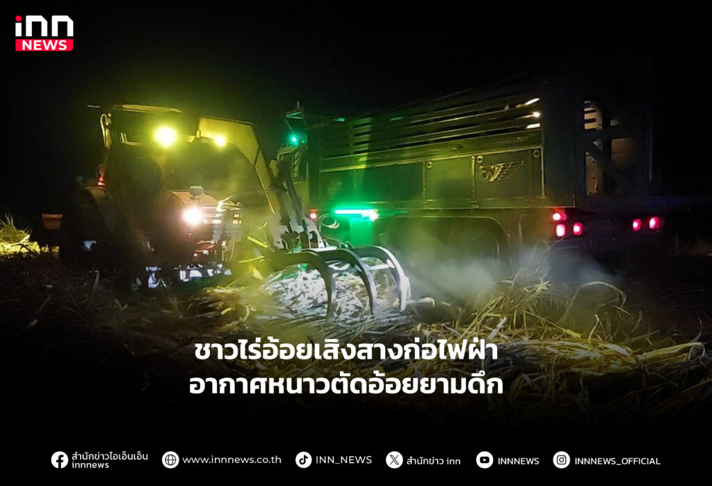 ชาวไร่อ้อยเสิงสางก่อไฟฝ่าอากาศหนาวตัดอ้อยยามดึก