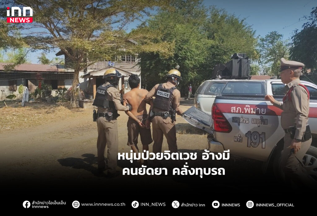 หนุ่มป่วยจิตเวช อ้างมีคนยัดยา คลั่งทุบรถ ทำลายข้าวของในบ้าน แม่แจ้งตำรวจช่วยจับกุม นำตัวส่งรักษา รพ.