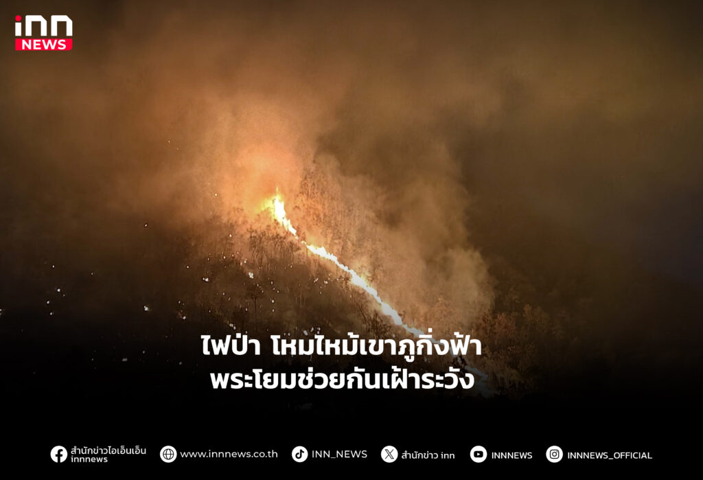 ไฟป่า โหมไหม้เขาภูกิ่งฟ้า พระโยมช่วยกันเฝ้าระวัง