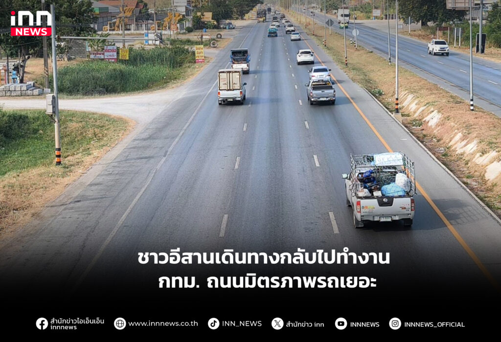 ชาวอีสานเดินทางกลับไปทำงาน กทม.วันหยุดสุดท้าย ทำถนนมิตรภาพ รถเริ่มมาก คาดว่า ตลอดทั้งวัน จะมีปริมาณรถเพิ่มมากขึ้น
