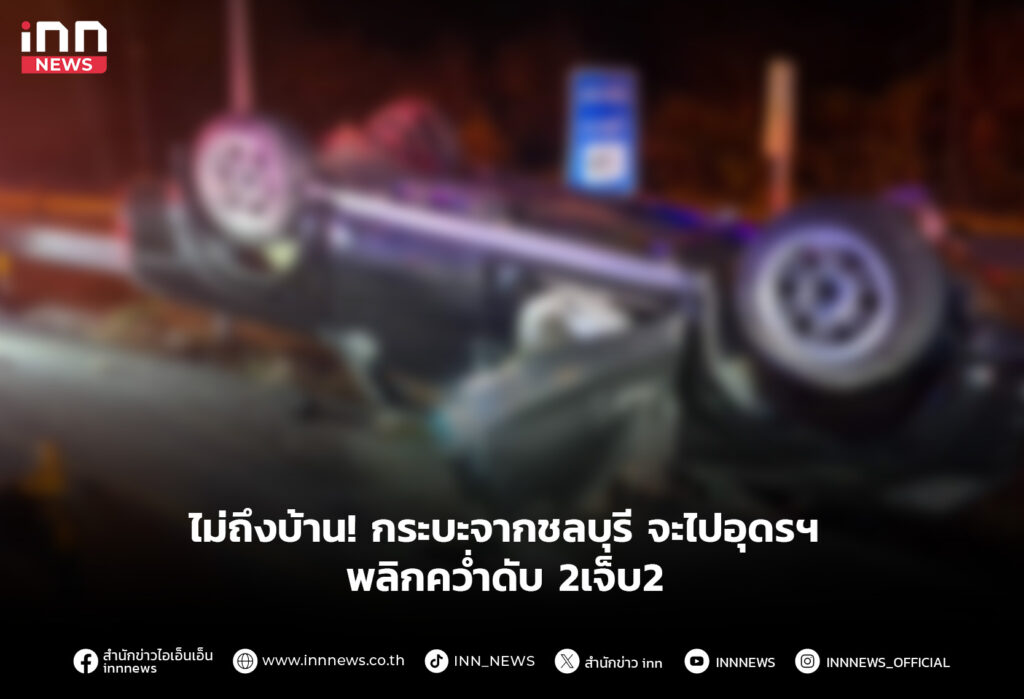 ไม่ถึงบ้าน! กระบะจากชลบุรี จะไปอุดรฯ พลิกคว่ำดับ 2เจ็บ2
