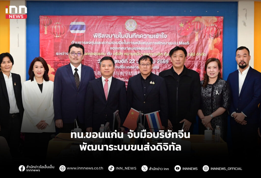 ทน.ขอนแก่น จับมือบริษัท หนานหนิง เรล ทรานชิท สป.จีน ร่วมพัฒนาระบบขนส่งดิจิทัล ในเขตเมืองสร้างโครงสร้างพื้นฐานด้านการคมนาคม และระบบนิเวศดิจิทัลของเมืองอย่างยั่งยืน