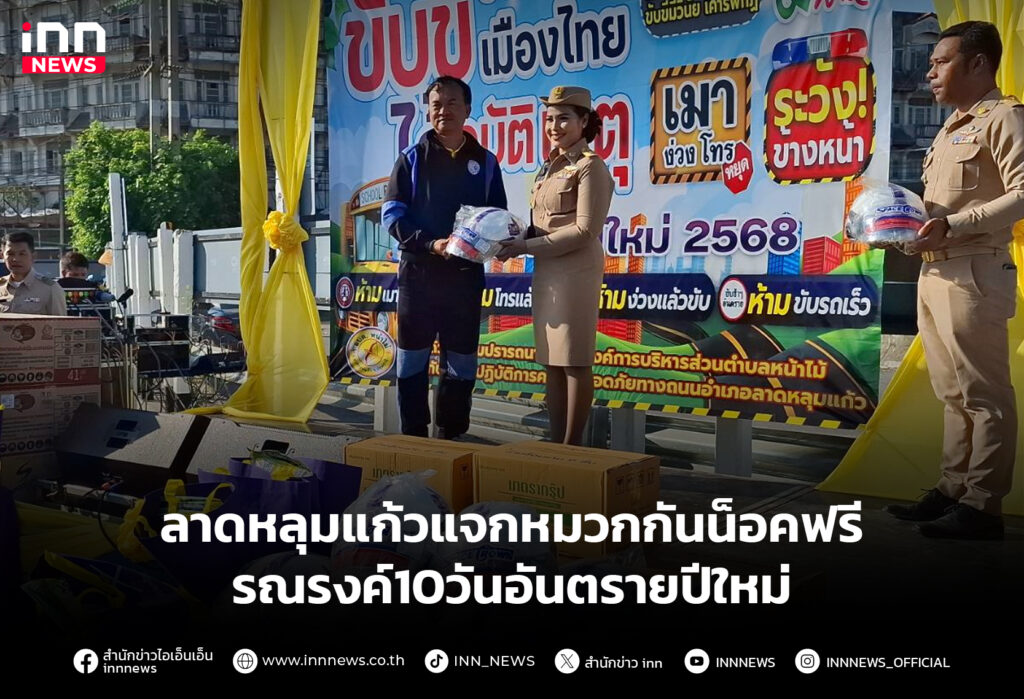 ลาดหลุมแก้วแจกหมวกกันน็อคฟรีรณรงค์10วันอันตรายปีใหม่