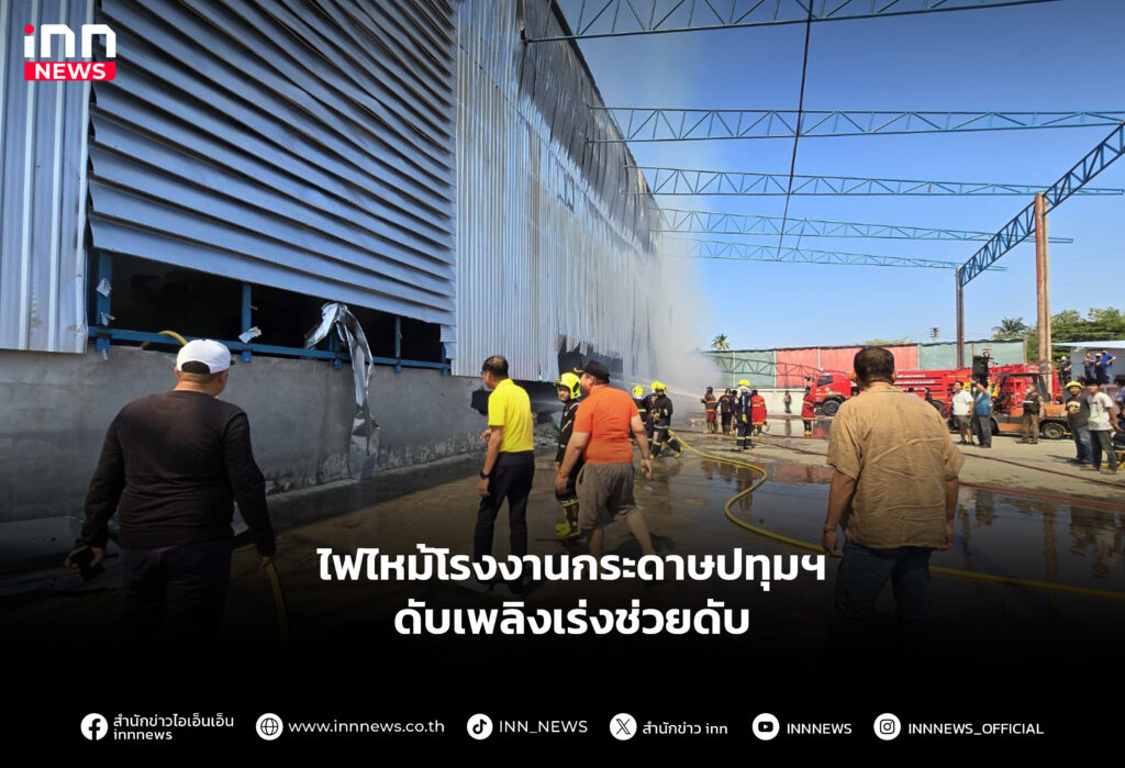 ปทุมธานีไฟไหม้โรงงานกระดาษจนท.ดับเพลิงเร่งช่วยกันดับ ศูนย์พิสูจน์หลักฐาน1 เข้าตรวจสอบที่เกิดเหตุแล้ว