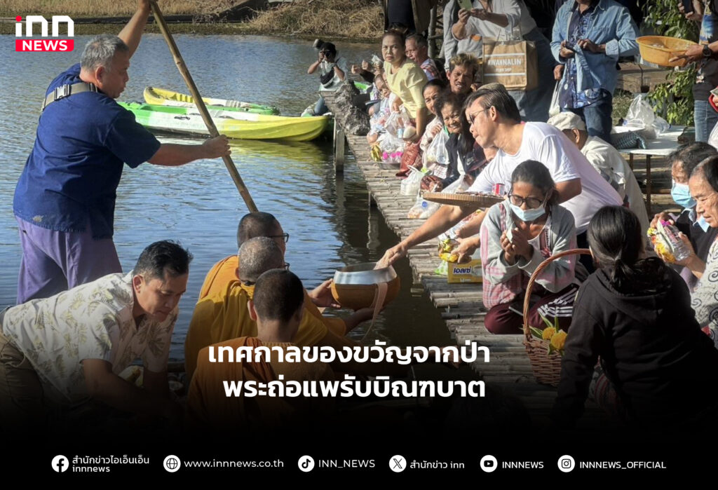 ชุมชนบ้านสุขสมบูรณ์ วังน้ำเขียว โคราช เปิดเทศกาล “ของขวัญจากป่า” ตอน “สายน้ำแห่งชีวิต” นิมนต์พระสงฆ์นั่งแพไม้ไผ่รับบิณฑบาตนักท่องเที่ยว