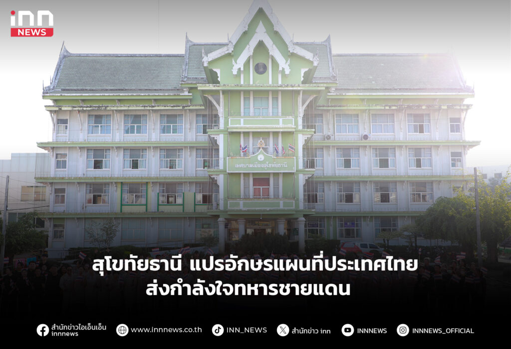 เทศบาลเมืองสุโขทัยธานี แปรอักษรเป็นแผนที่ประเทศไทย ส่งกำลังใจให้ทหารชายแดน
