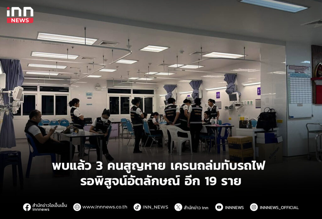 พบแล้ว3 คนสูญหายเครนถล่มทับรถไฟ รอพิสูจน์อัตลักษณ์อีก19ราย