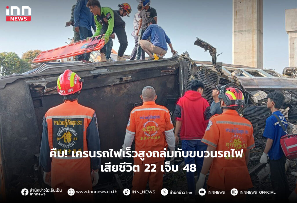 คืบ! เครนรถไฟความเร็วสูงถล่มทับขบวนรถไฟ กรุงเทฯ-อุบลฯ ที่โคราช ล่าสุด ตาย 22 ราย บาดเจ็บกว่า 48 ราย
