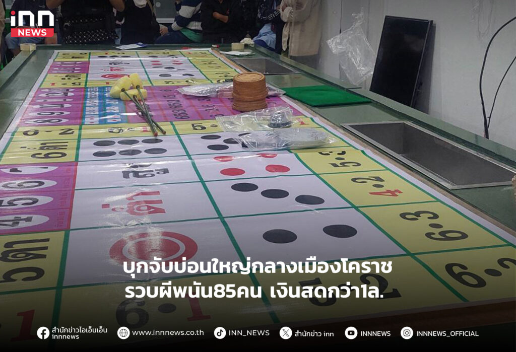 ชุดปฏิบัติการกรมการปกครองบุกจับบ่อนใหญ่กลางเมืองโคราช รวบผีพนันได้ 85 คน ของกลางเงินสดกว่า 1 ล้านบาท