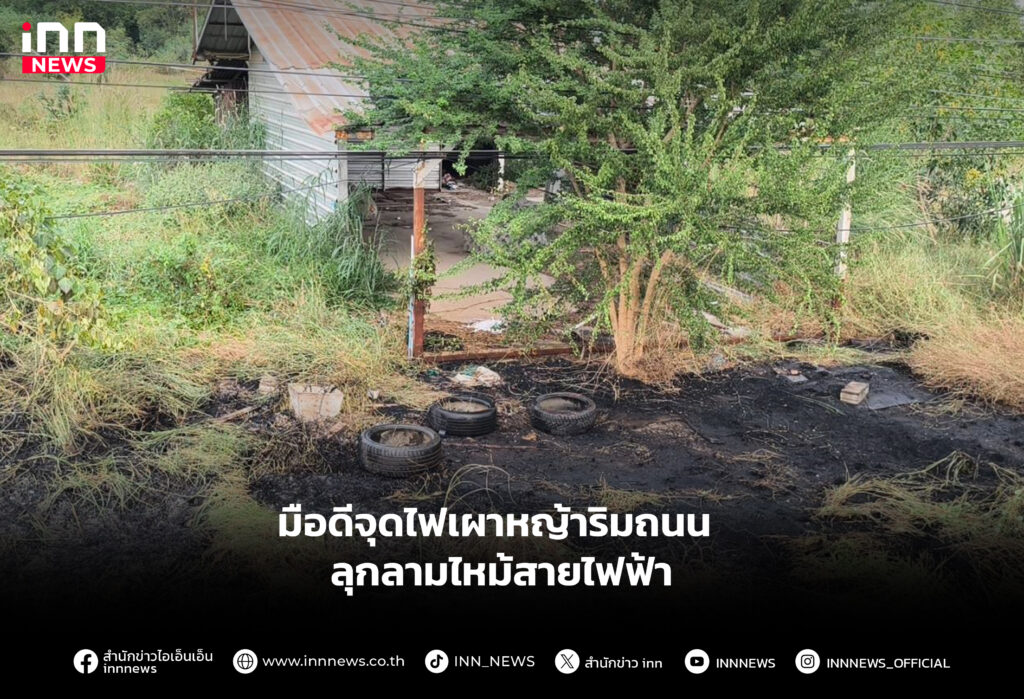 มือดีจุดไฟเผาหญ้าริมถนน ลุกลามไหม้สายไฟฟ้า