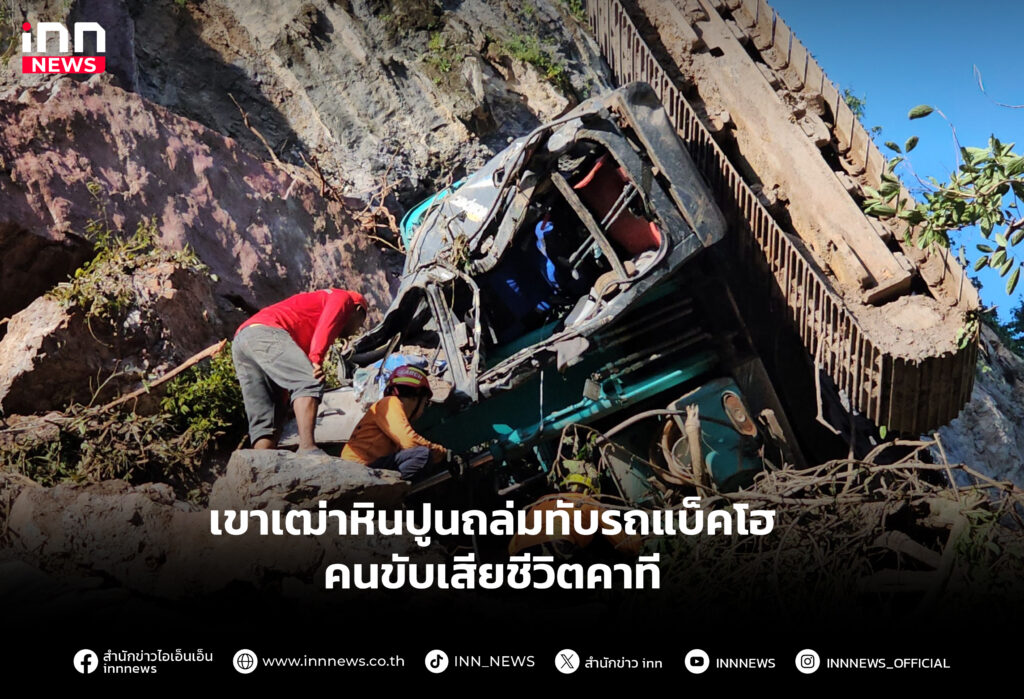 เขาเฒ่าหินปูนถล่มทับรถแบ็คโฮคนขับเสียชีวิตคาที