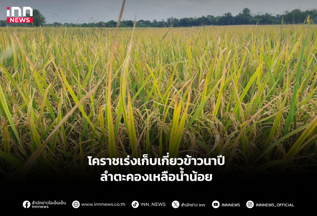โคราชเร่งเก็บเกี่ยวข้าวนาปีลำตะคองเหลือน้ำน้อย