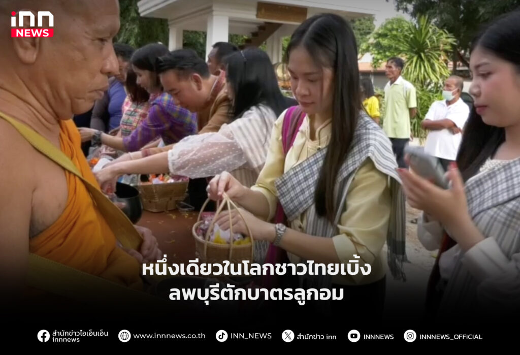 หนึ่งเดียวในโลกชาวไทยเบิ้งลพบุรีตักบาตรลูกอม