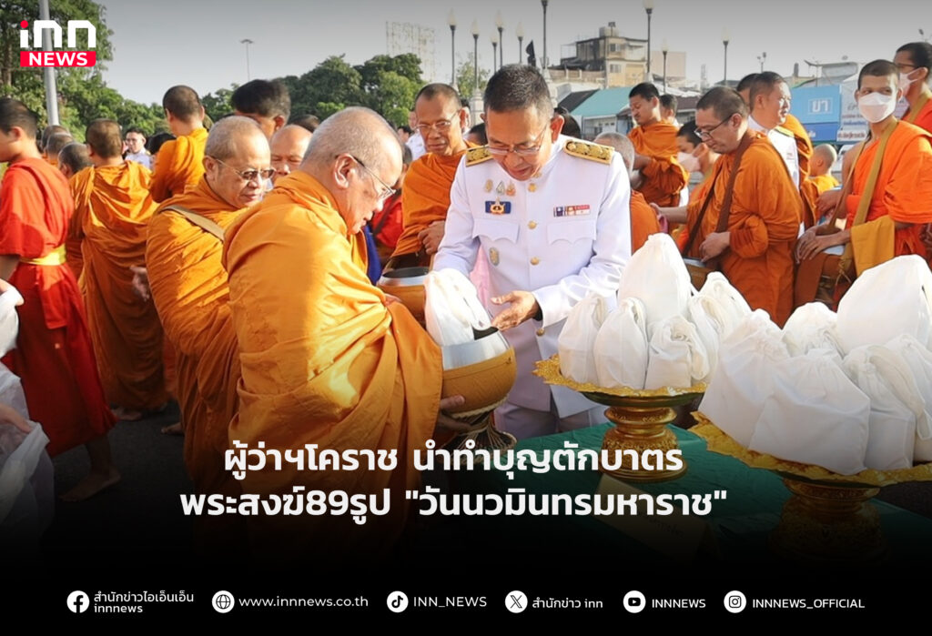 ผู้ว่าฯโคราช นำทำบุญตักบาตรพระสงฆ์89รูป “วันนวมินทรมหาราช”