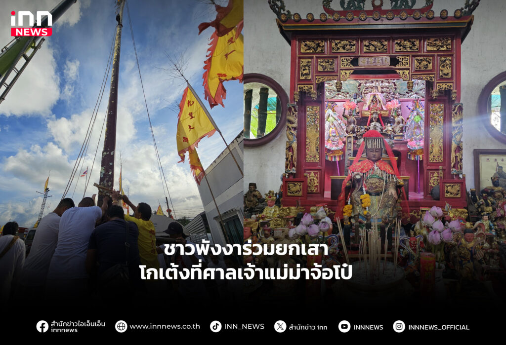 ชาวพังงาร่วมยกเสาโกเต้งที่ศาลเจ้าแม่ม่าจ้อโป๋