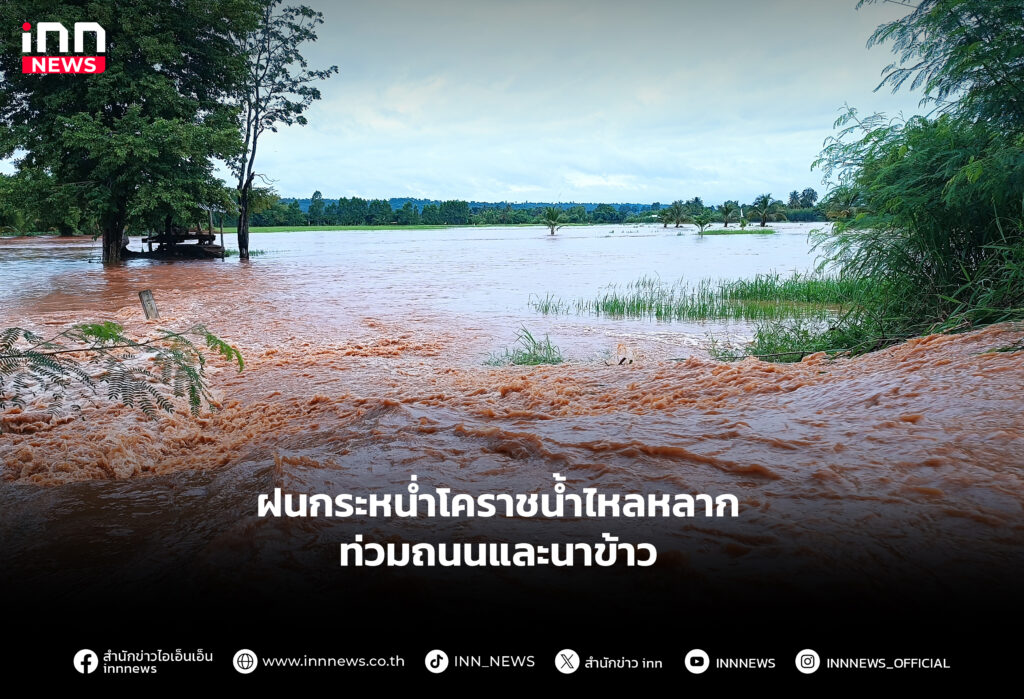 ฝนกระหน่ำโคราชน้ำไหลหลากท่วมถนนและนาข้าว