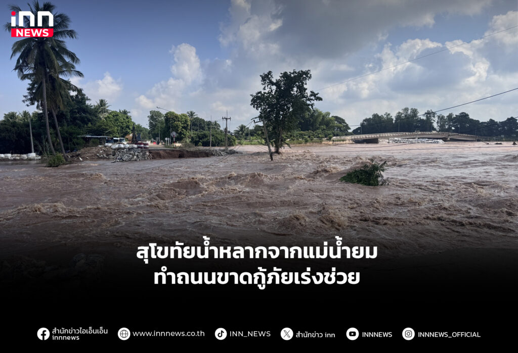 สุโขทัยน้ำหลากจากแม่น้ำยมทำถนนขาดกู้ภัยเร่งช่วย