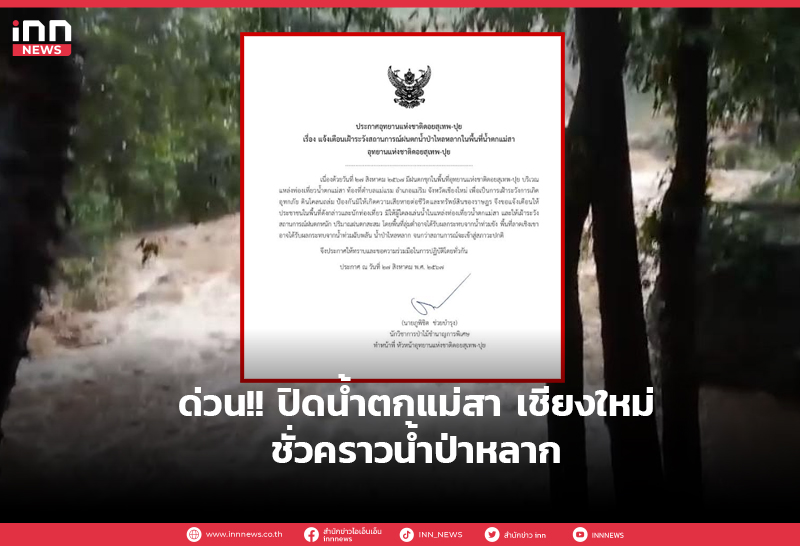 ด่วน!! ปิดน้ำตกแม่สา อ.แม่ริม จ.เชียงใหม่ ชั่วคราว หลังเกิดน้ำป่าไหลหลาก ไม่อนุญาตให้นักท่องเที่ยวเข้าชม