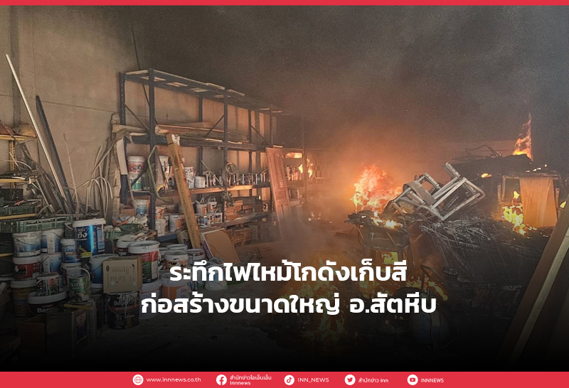 ระทึกไฟไหม้โกดังเก็บสีก่อสร้างขนาดใหญ่ อ.สัตหีบ