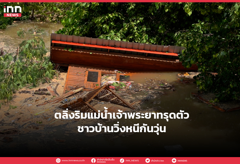 ตลิ่งริมแม่น้ำเจ้าพระยาทรุดตัวชาวบ้านวิ่งหนีกันวุ่น