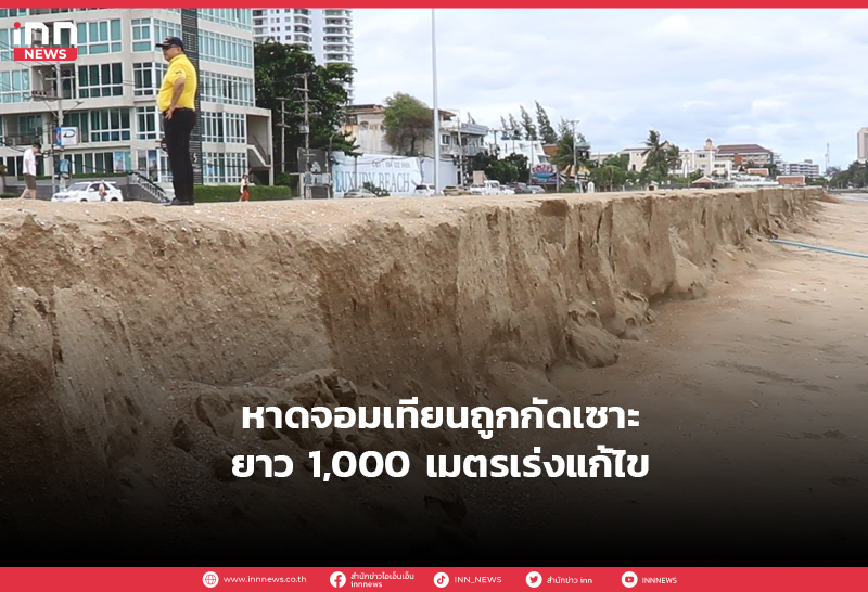 รุดตรวจสอบชายหาดนาจอมเทียน ถูกกัดเซาะจากคลื่นลมมรสุม ระยะทาง 1,000 เมตร จัดทำป้ายแจ้งเตือน หลีกเลี่ยงการใช้พื้นที่ชั่วคราว