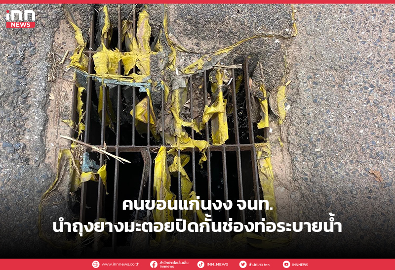 คนขอนแก่นงง จนท.นำถุงยางมะตอยปิดกั้นช่องท่อระบายน้ำ