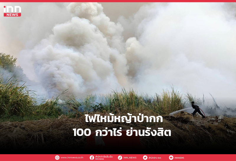 ไฟไหม้หญ้าป่ากก100กว่าไร่ย่านรังสิต