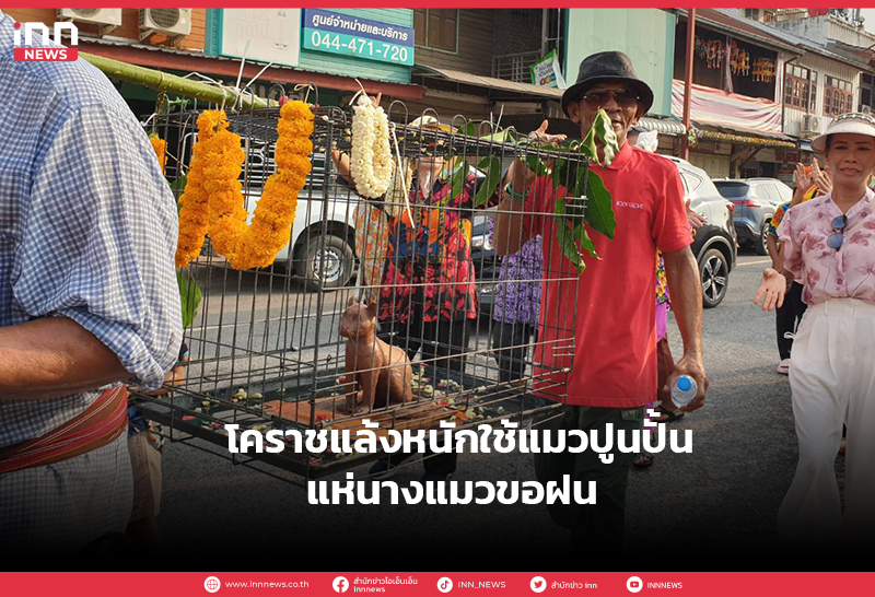 โคราชแล้งหนัก ชาวบ้านใช้แมวปูนปั้น แห่นางแมวขอฝน รอบปราสาทหินพิมาย แทนแมวจริง เลี่ยงทรมานสัตว์