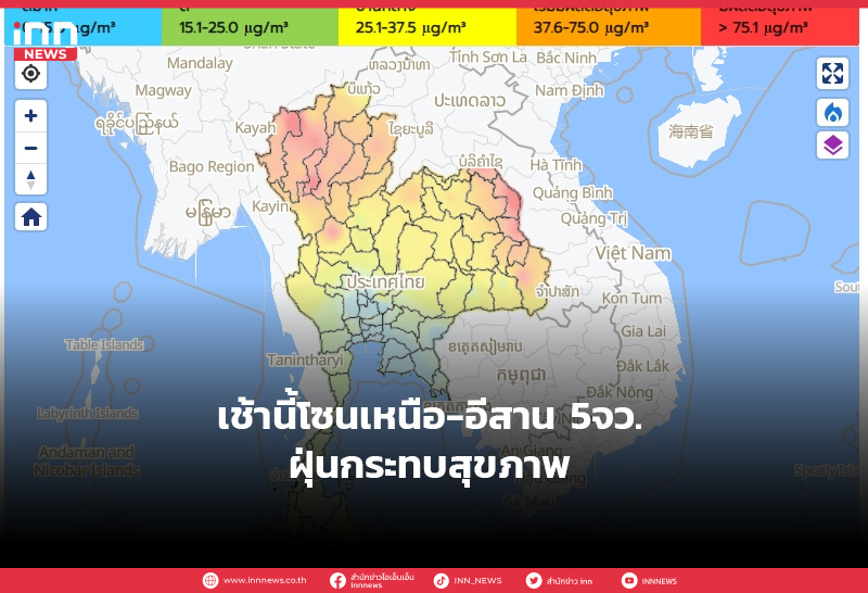 เช้านี้โซนเหนือ-อีสาน5จว.ฝุ่นกระทบสุขภาพ