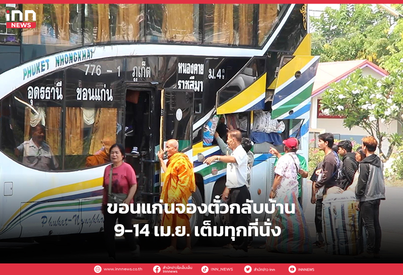 ขอนแก่น คนจองตั๋วกลับบ้าน 9 – 14 เม.ย. เต็มแล้วทุกที่นั่ง รวมทั้งขากลับเข้า กรุงเทพฯ ระหว่าง 14 – 17 เม.ย. ถูกจองเต็มทุกเที่ยวเช่นกัน