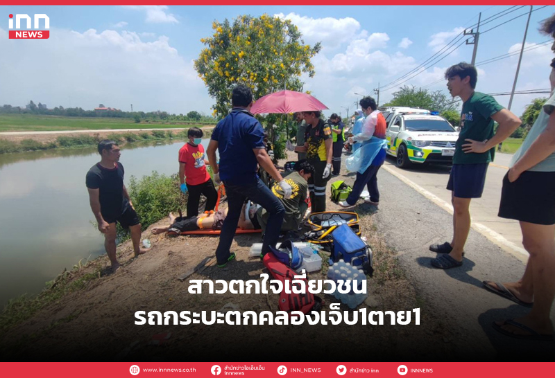 สาวตกใจเฉี่ยวชนรถกระบะตกคลองเจ็บ1ตาย1