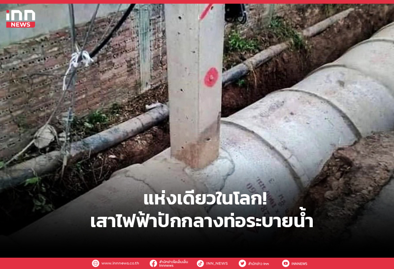 แห่งเดียวในโลก!เสาไฟฟ้าปักกลางท่อระบายน้ำ