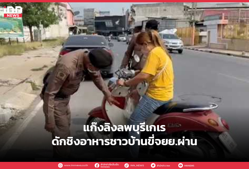 แก๊งลิงเกเร ดักชิงอาหารชาวบ้านที่ขับรถจักยานยนต์ผ่านพระปรางค์สามยอด ต่อหน้าเจ้าหน้าที่ตำรวจสายตรวจหนังสติ๊ก