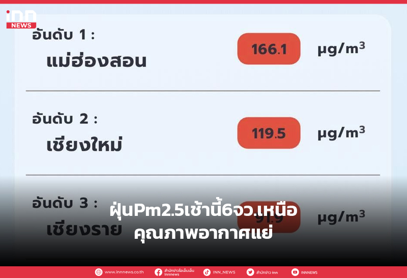 ฝุ่นPm2.5เช้านี้6จว.เหนือคุณภาพอากาศแย่