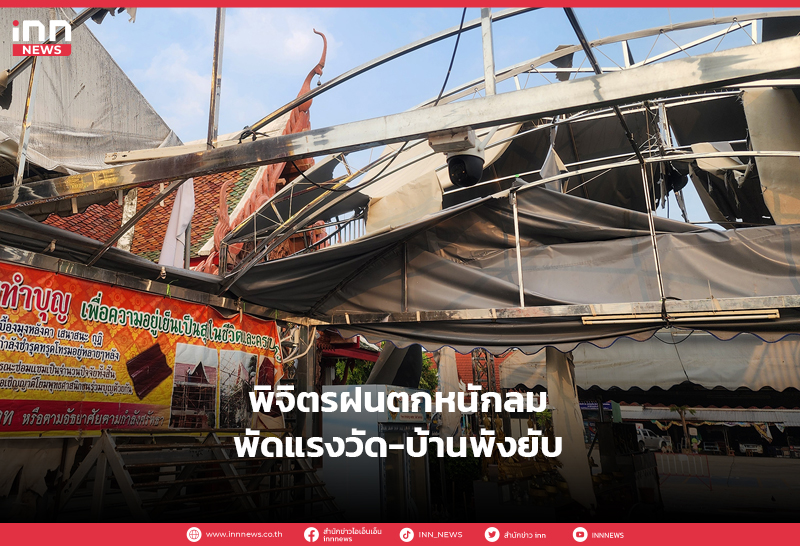 พิจิตรฝนตกหนักลมพัดแรงวัดท่าหลวงพระอารามหลวง และบ้านเรือนราษฎรบึงสีไฟเสียหายยับ