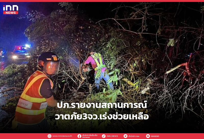 ปภ.รายงานสถานการณ์วาตภัยในพื้นที่ 3 จังหวัด เร่งสำรวจความเสียหายและให้การช่วยเหลือ