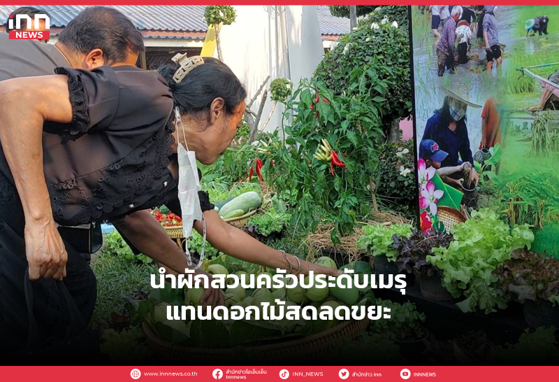 นำผักสวนครัวประดับเมรุแทนดอกไม้สดลดขยะ