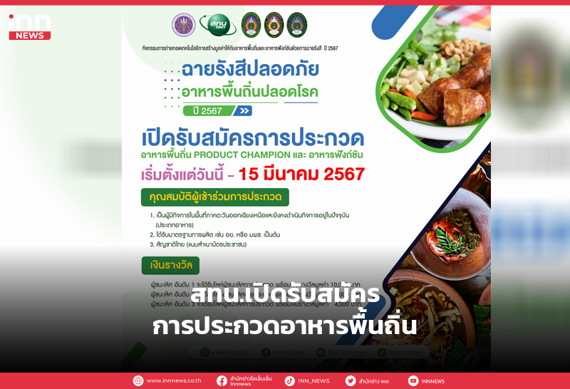 ศรีสะเกษ สถาบันเทคโนโลยีนิวเคลียร์แห่งชาติ หรือ สทน.เปิดรับสมัครการประกวดอาหารพื้นถิ่น PRODUCT CHAMPION และ อาหารฟังก์ชัน