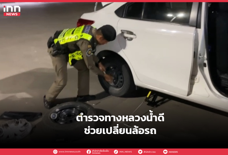 ตำรวจทางหลวงน้ำดีช่วยเปลี่ยนล้อรถ