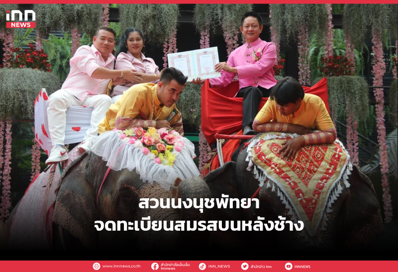 สวนนงนุชพัทยาจดทะเบียนสมรสบนหลังช้าง