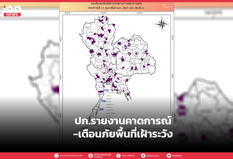 ปภ.รายงานคาดการณ์และแจ้งเตือนภัยพื้นที่เฝ้าระวัง ประจำวันที่ 15 กุมภาพันธ์ 2567 เวลา 08.00 น.
