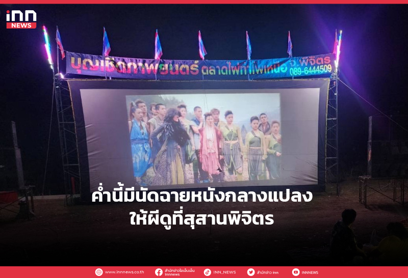 ค่ำนี้มีนัดดูหนังกลางแปลงบรรยากาศสุดสยองฉายหนังกลางแปลงให้ผีดูที่สุสานพิจิตร
