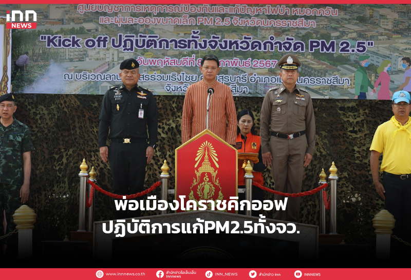 พ่อเมืองโคราช คิกออฟ ปฏิบัติการแก้ฝุ่น PM2.5 ทั้งจังหวัด หลังค่าฝุ่นเกิน ขอความร่วมมือ ปชช. ลดเผา